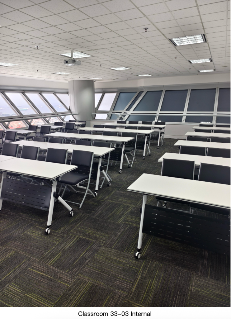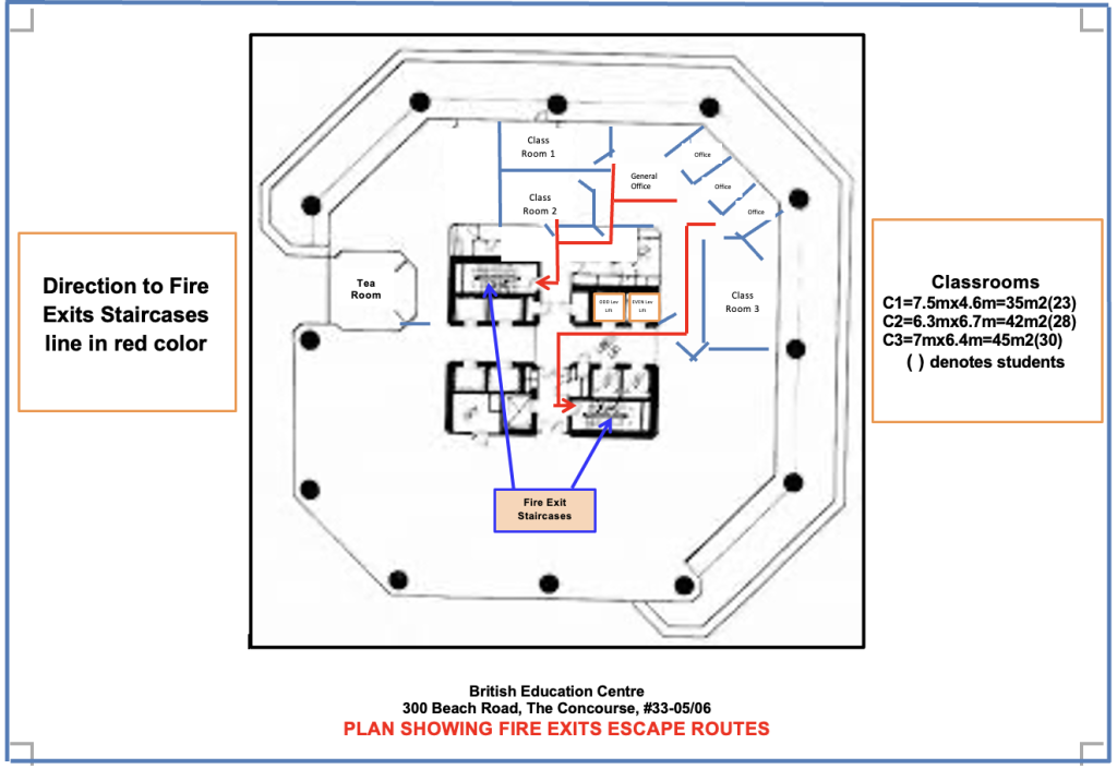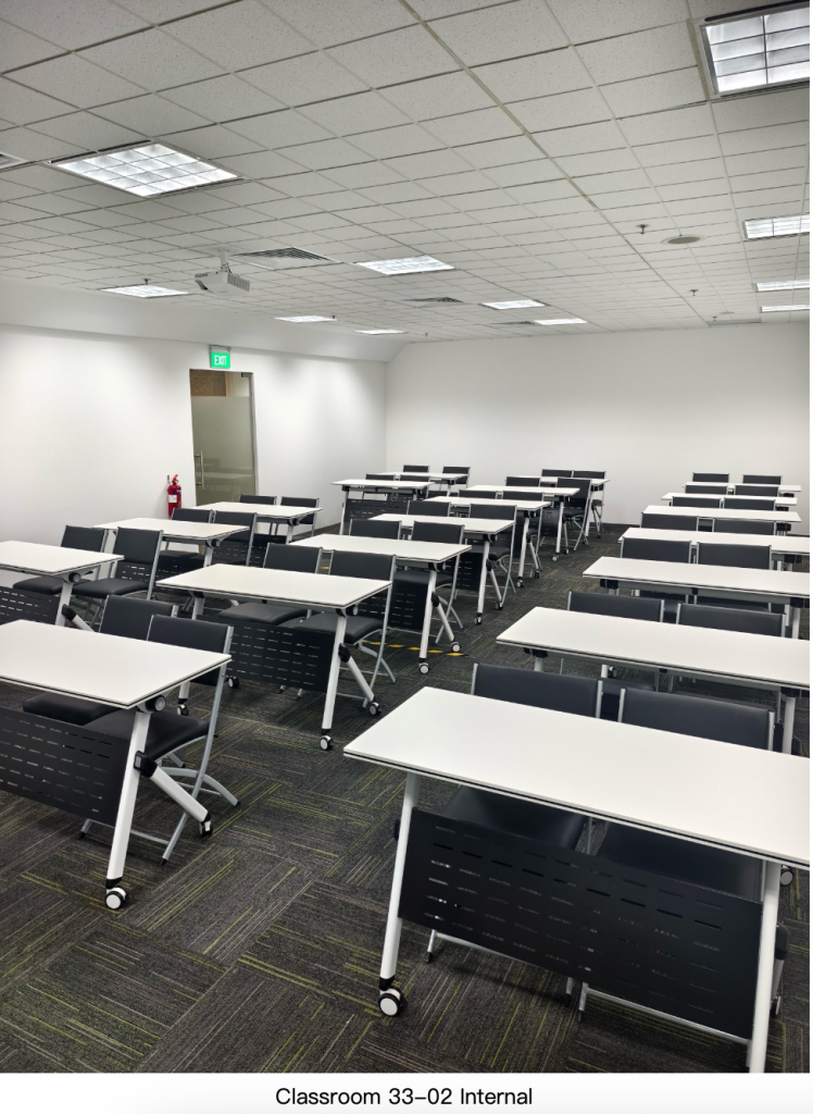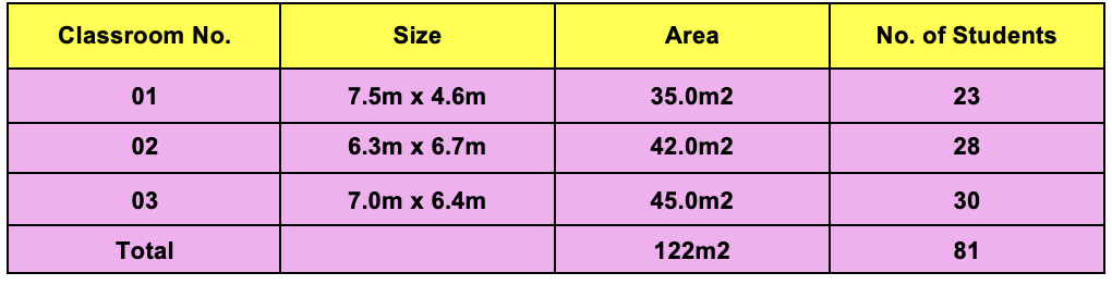 We currently have 8 classrooms across 2 levels with the capacity as follows, a pantry for students to take a tea break, and a small open-spaced library for students to read books: